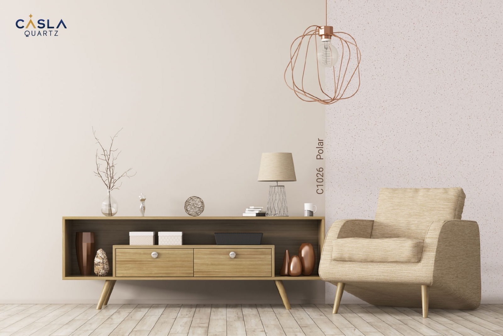 Đá thạch anh nhân tạo Polar có thể ốp tường phòng khách hay phòng ngủ